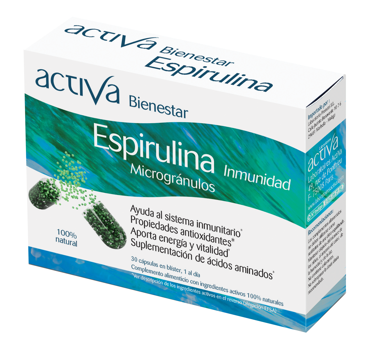 Espirulina (Spirulina Platensis) 200 mg, Berro (Nasturtium Officinalis) 33,3 mg.